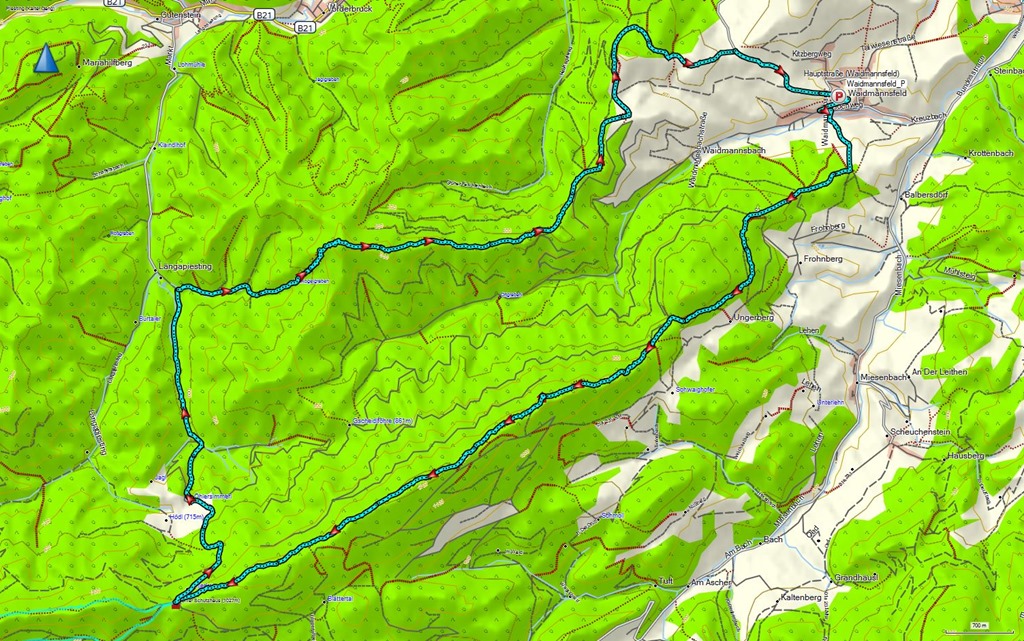 A változatosság kedvéért most nagyobbacska kerülővel közelítem meg a Veitsch masszívumát. Mint a fenti profilból is jól kivehető, az út itt felér egy idillien kellemes sétával, mely helyenként szép fenyves erdő mélyén, máskor meg széles erdei úton halad. A kihívások a Rothsolalm feletti útkereszteződésben (Nikolokreuz), az Ördögösvénnyel (Teulefessteig) kezdődnek.