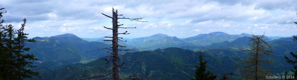 Pillantás északi irányban, balról jobbra Türnitzer Höger, Trainser Hinteralm, Reisalpe, Hochstaff.