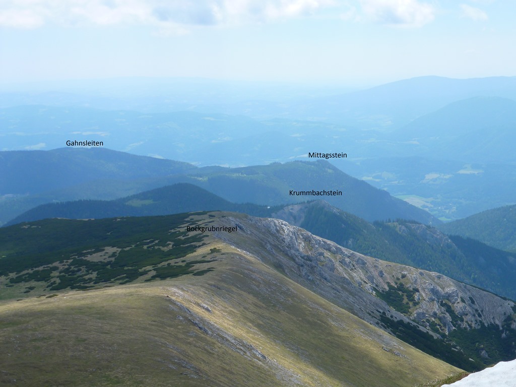 Szinte frissen érkezem a platóra, ezért nem is lehet kétséges, hogy utam a Vaxriegelen át vezet a Fischerhüttebe, ahol elképzeléseim szerint már vár rám a megérdemelt korsó sör és az ebédem. Fél tizenkettőkor és szombati nap lévén már nagy a tülekedés a menedékházban, de egy magányos vándornak mindig akad üres szék valamely asztalnál. Nem sokat időzöm. Eszem-iszom és már indulok is. A kunyhóból kilépve megcsap az északi szél fagyos lehelete és arra kényszerít, hogy beöltözzem. Fagyos kezeimen érzem, milyen hideg van a Schneeberg csúcsán, melyet még egy extra felhőréteg is eltakar, a nap melengető sugarai elől.