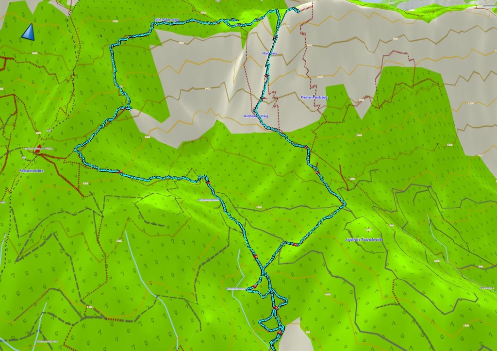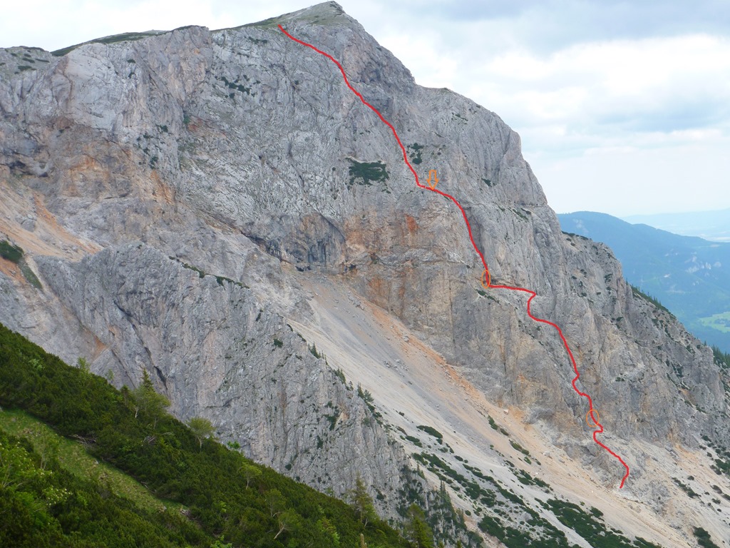 Tudtam, hogy ez egy “harakiri”-túra, tehát több menekülő utat is tervbe vettem. Az első kiszállás az Északi Grafensteigen át lehetséges anélkül, hogy nekilendülnék a Herminensteignek. A másik kiszállás a Herminensteig végéből a tavalyi útvonalon át lehetséges. A harmadik kiszállást pedig a Klosterwappen csúcsán lehet végrehajtani úgy, hogy nem a Déli Grafensteigre ereszkedem le, hanem vissza a Damböckhaus-Schneebrgbahn irányába.