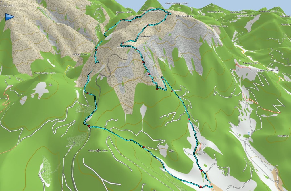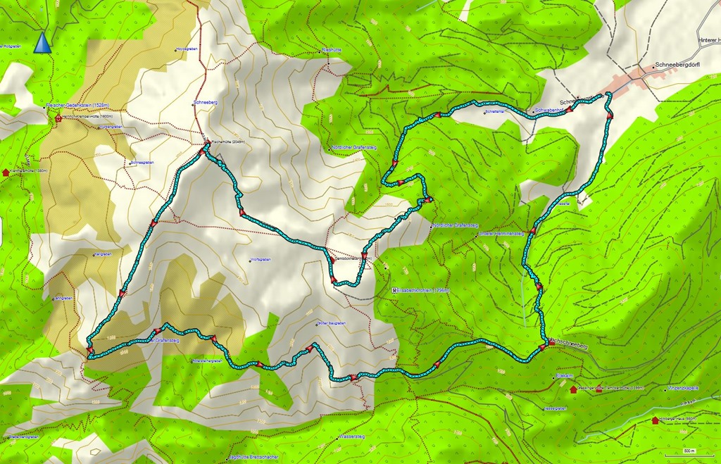 Miközben tehát azon tanakodom, miként szólítám meg a hegy eme titokzatos részét, óhatatlanul eszembe jut tavalyi szerencsés kimenetelű kudarcom a Herminensteigen. Mindenképpen illene kivasalnom. Innen jön az ötlet, hogy Schneebergdörfl falucskából indulva, a Schneidergrabenen át tegyek újabb próbát a Felső Herminensteiggel, majd a Vaxriegelen át a Fischerhütte érintésével, a Klosterwappenen át szálljak le a Déli Grafensteigre, hogy Baumgartneron át érjek vissza a kiindulópontba.